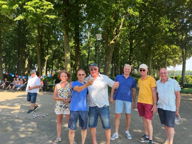 Het weer was erna: veel zon, warmte, droog en gezelligheid. Een lekker hapje en drankje voor tussendoor en samen Jeu de Boules gespeeld op de mooie banen bij de Jeu de Boulesvereniging in ons eigen dorp. Een mooie opkomst met 56 deelnemers, ivm ziekte waren er helaas 5 afgehaakt. Anders hadden we een nog mooier aantal gehad.